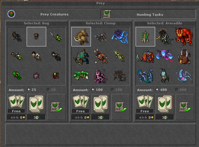 Dica: Para obter o máximo proveito do sistema, complete as tarefas diariamente e use os Prey Cards estrategicamente para obter criaturas com melhores recompensas.